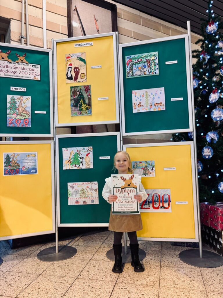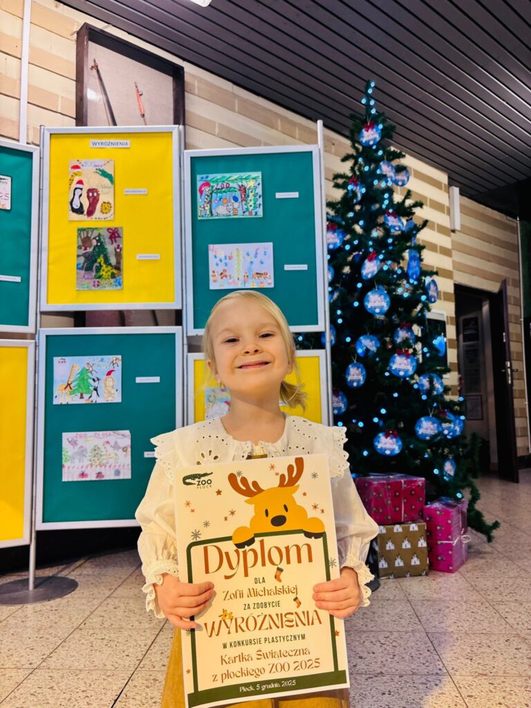 GRATULACJE DLA ZOSI ZA ZDOBYCIE WYRÓŻNIENIA W KONKURSIE PLASTYCZNYM ,,KARTKA ŚWIĄTECZNA Z PŁOCKIEGO ZOO 2025″