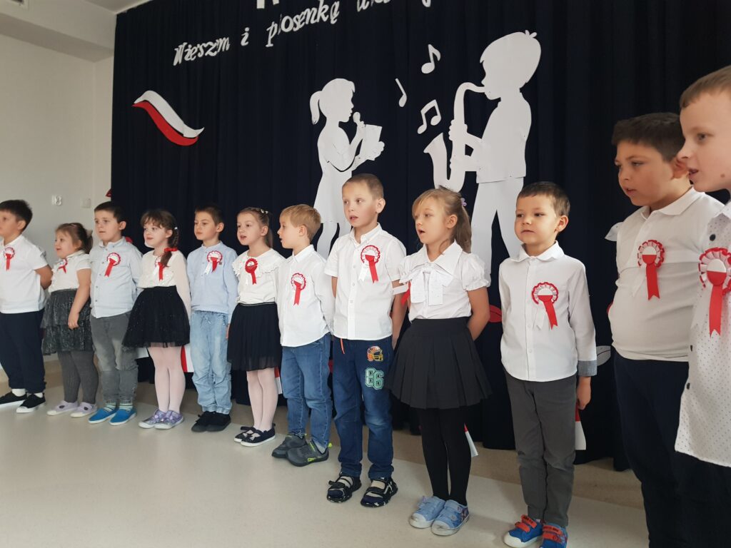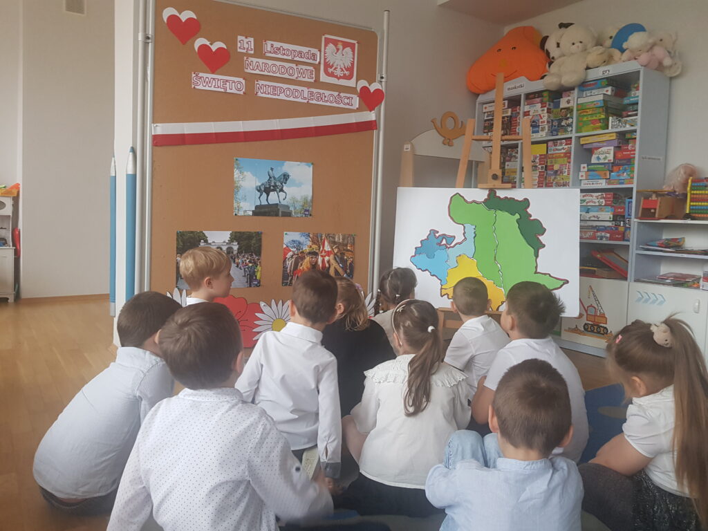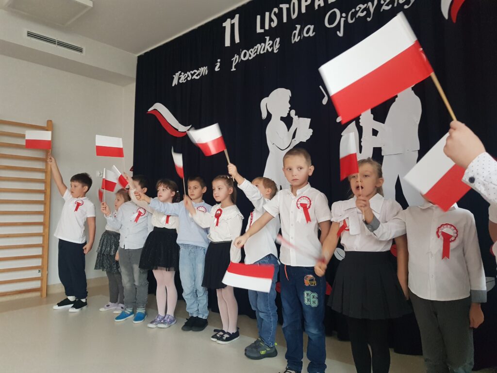 W ostatnim tygodniu Pandusie przygotowywały się do uroczystych obchodów Narodowego Święta Niepodległości. Dzieci dowiedziały się, że w historii Polski był okres, podczas którego nie było Polski na mapach świata. Poznały pojęcie niepodległości oraz to jak być dobrym Polakiem i patriotą. Podczas przedszkolnej uroczystości śpiewały piosenkę „Jest takie miejsce”, a Agatka i Liwia reprezentowały naszą grupę w konkursie recytatorskim „Polska – moja ojczyzna”. O godz 11.11 Pandusie wspólnie z całą społecznością przedszkolną zaśpiewały Mazurka Dąbrowskiego, biorąc w ten sposób udział w ogólnopolskiej akcji Ministerstwa Edukacji Narodowej „Szkoła do hymnu”.